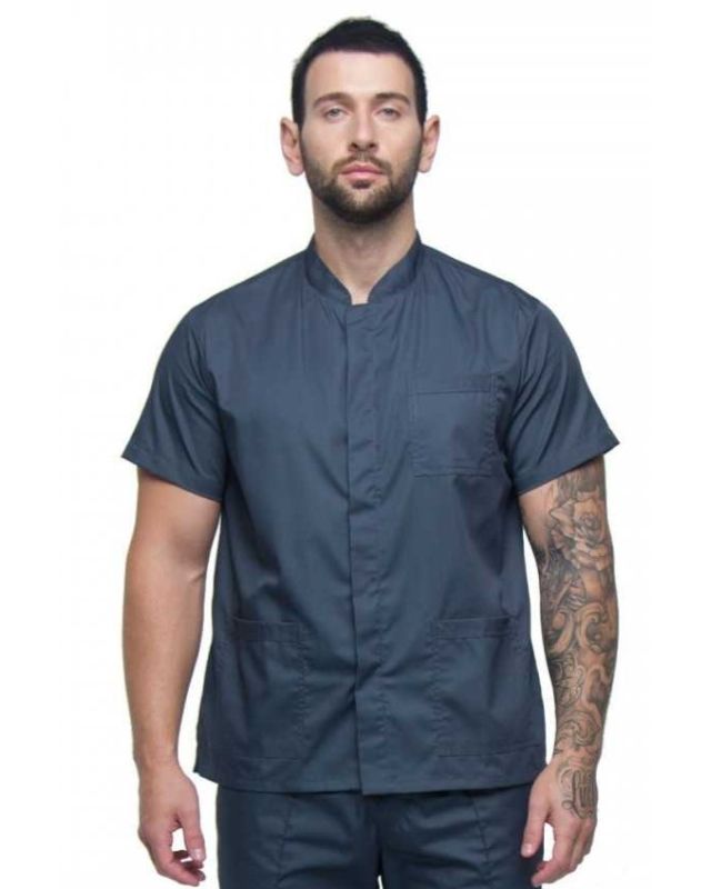The 201 Men's Medical Tunic is designed for comfort and practicality in the medical field. Featuring short sleeves, two spacious lower pockets, and an additional chest pocket, this model ensures both functionality and a professional look. The stand-up collar, lined with 100% cotton printed fabric, adds a refined touch, while the hidden snap-button closure provides a sleek and polished appearance.