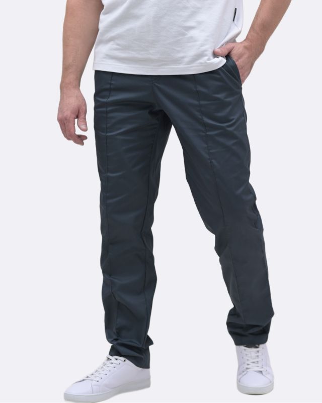 Straight-cut classic medical pants with two side pockets applied, elastic band and drawstring.