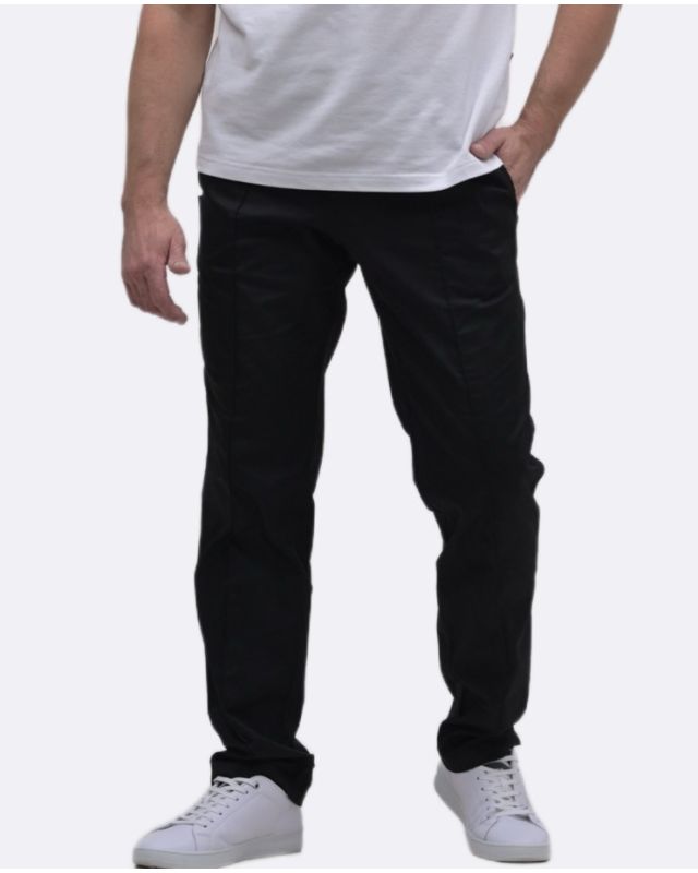 Straight-cut classic medical pants with two side pockets applied, elastic band and drawstring.
